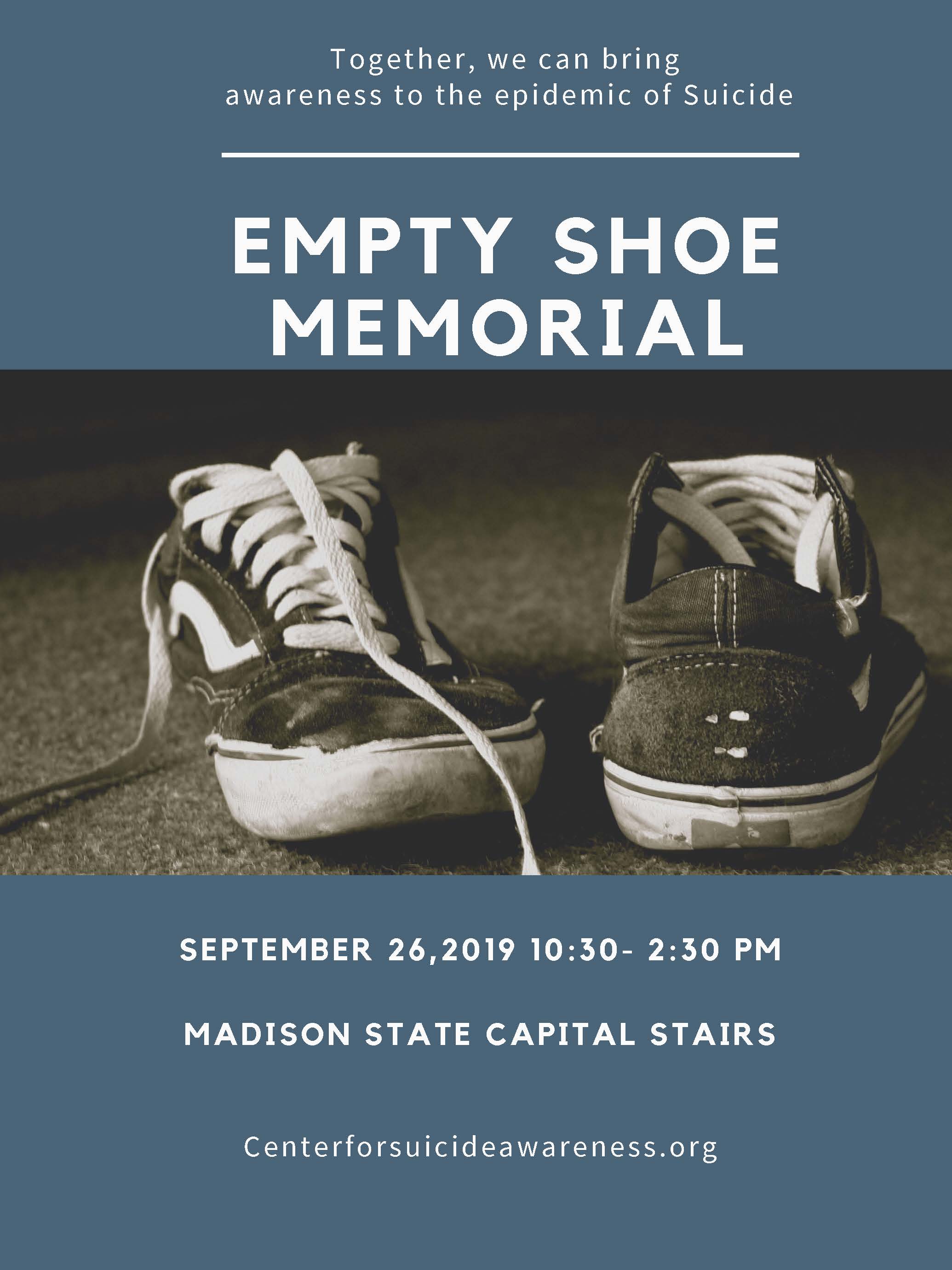 Join us as we honor all the people who died by suicide in Wisconsin in one year. We lay out a pair of empty shoes for each person. We will have resources available as well